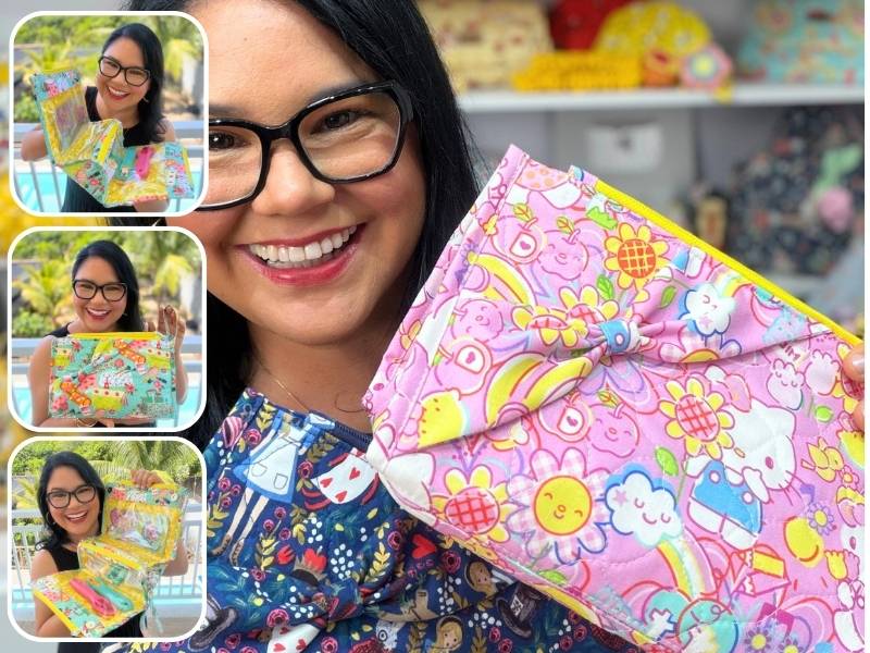Após finalizada a Bolsa fica com aproximadamente 23cm de Altura x 22cm de Comprimento x 4cm de Largura.